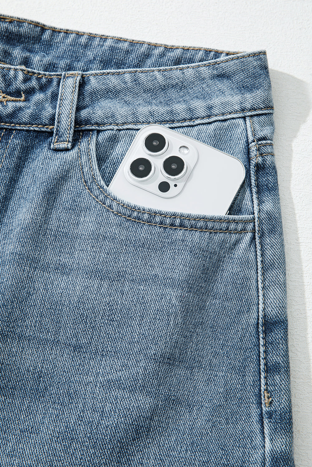 - Quality denim pants with intricate embroidery detailing.