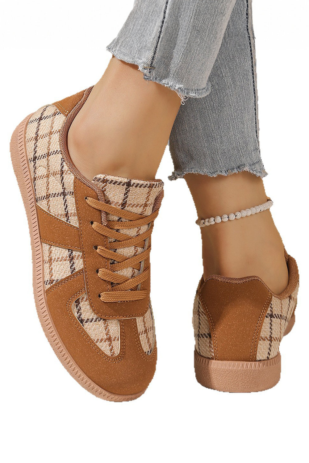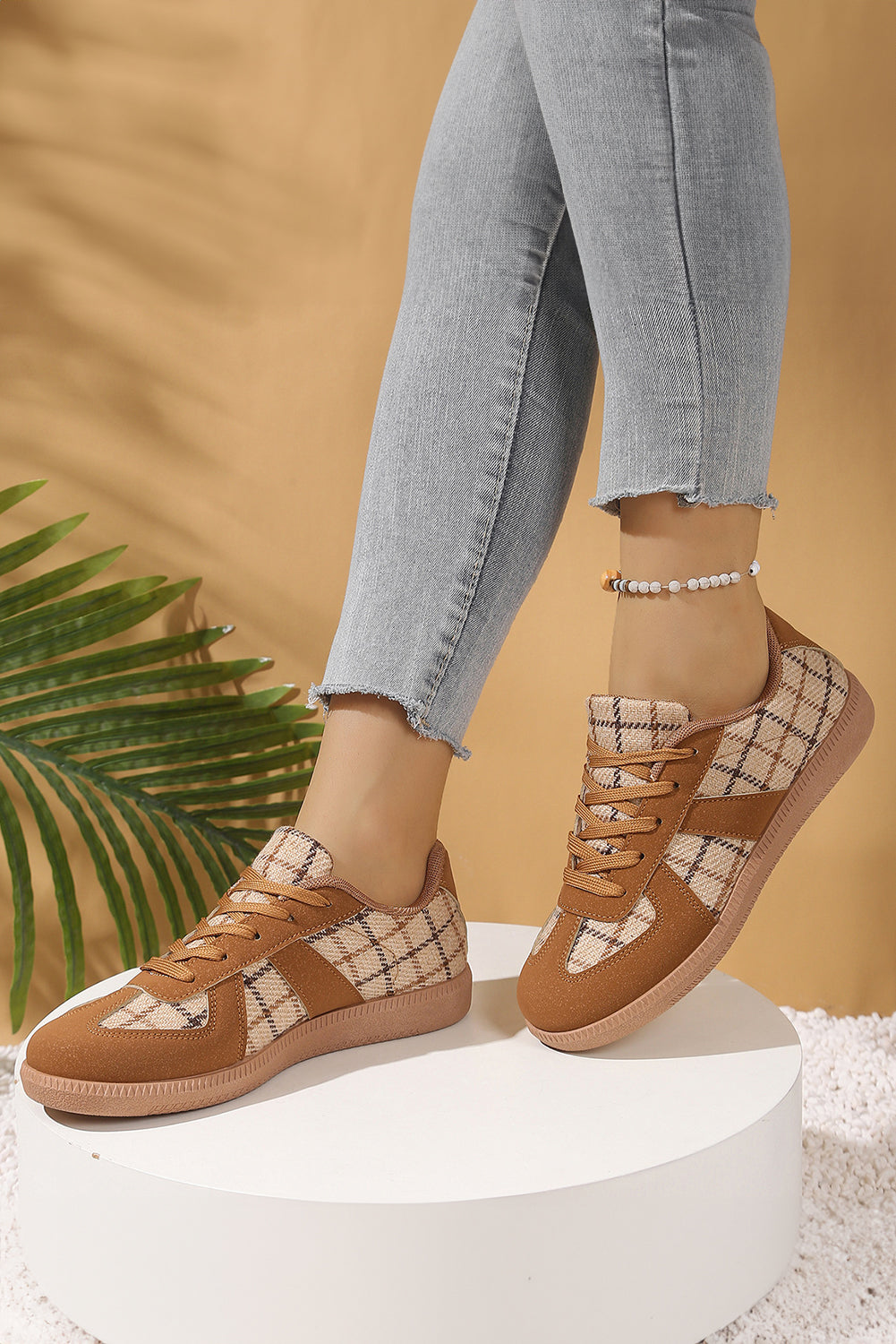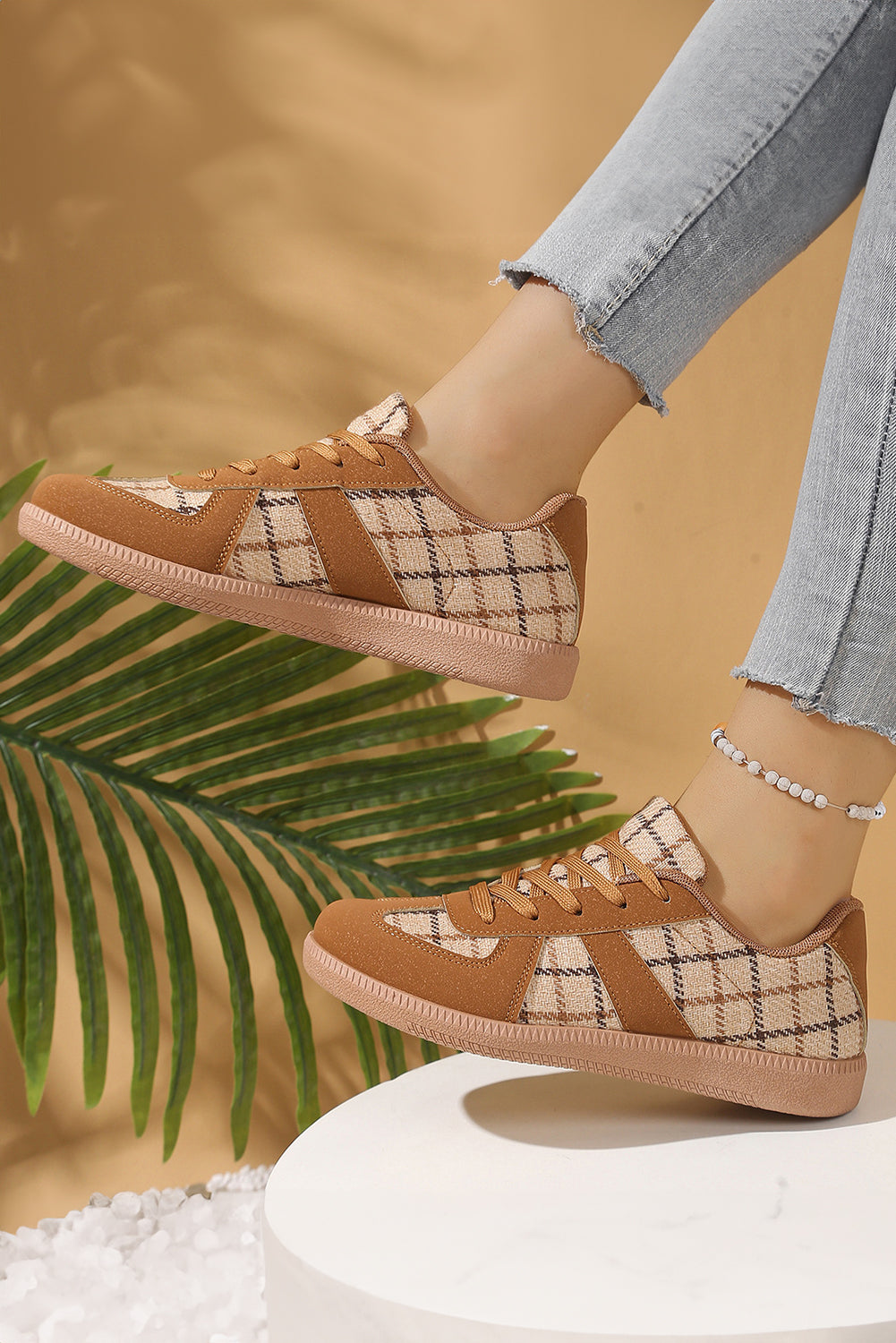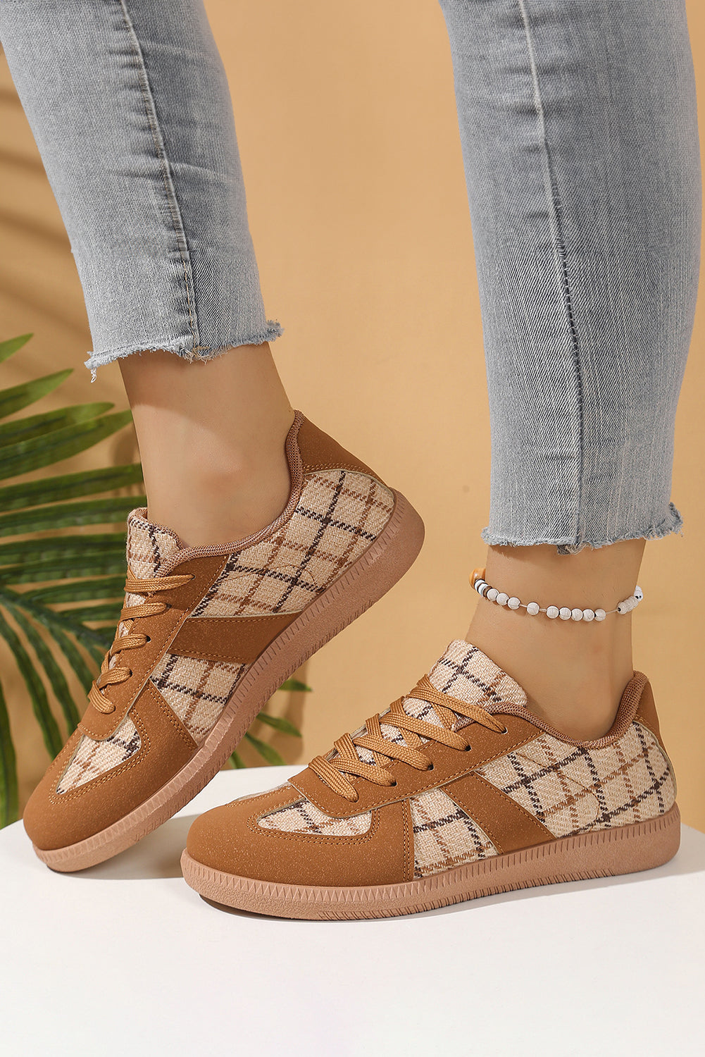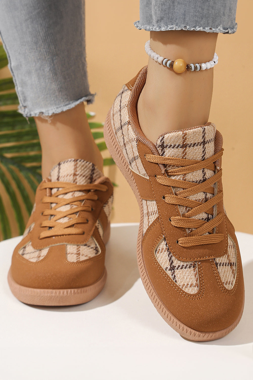 Mustard Retro Plaid Patchwork Lace Up Sneaker