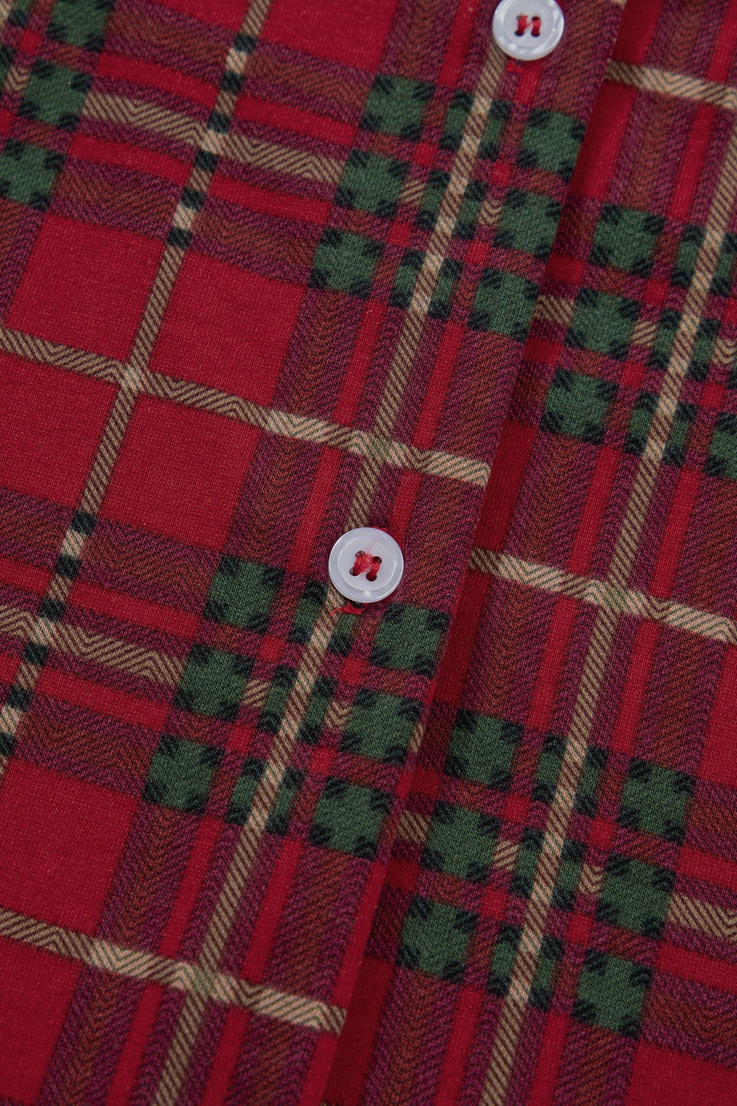 Red Plus Size Plaid Short Sleeve Shirt Loose Pants 2pcs Pajama Set