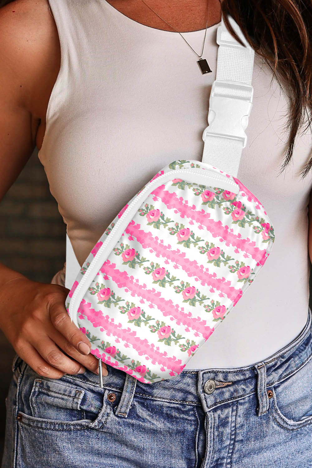 - Made from durable canvas, this crossbody bag features a striped floral design that adds elegant flair to any look.